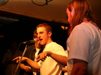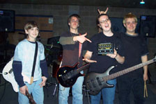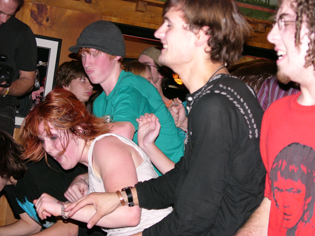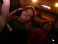 1. The Warhol Crowd with their gift bag contents! Thanks sponsors! 2.Trash Can Alley/ Michelle's new Sans Amp from Tech 21 3.The Hottness from GR 11/06/05
