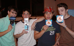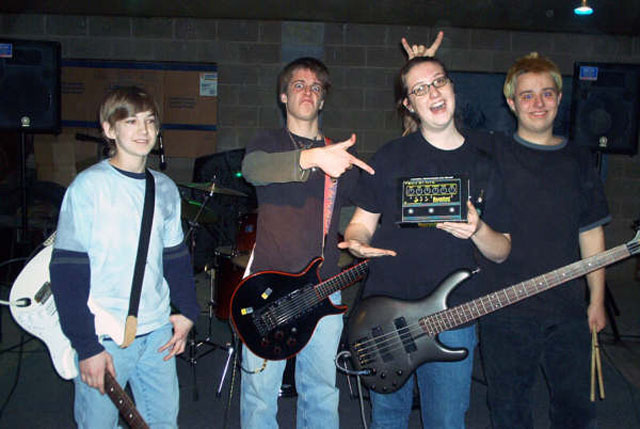 1. The Warhol Crowd with their gift bag contents! Thanks sponsors! 2.Trash Can Alley/ Michelle's new Sans Amp from Tech 21 3.The Hottness from GR 11/06/05